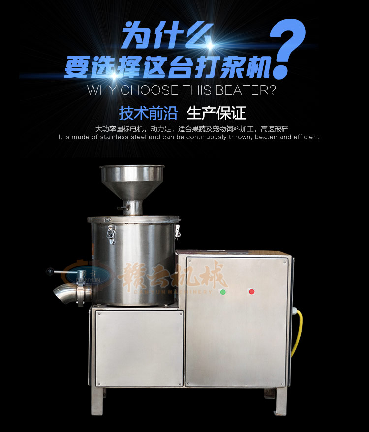 贛云牌流水式高速打漿機選用全不銹鋼材質設計制作,開機2-3分鐘即可完成打肉、配料,攪拌成漿。此款流水式高速打漿機針對流動性強肉漿的制作更方便,如稀釋肉漿的加工制作、果蔬漿,較稀的肉漿的制作,不論是從投料還是出料,贛云牌流水式高速肉丸打漿機都是更好的選擇。