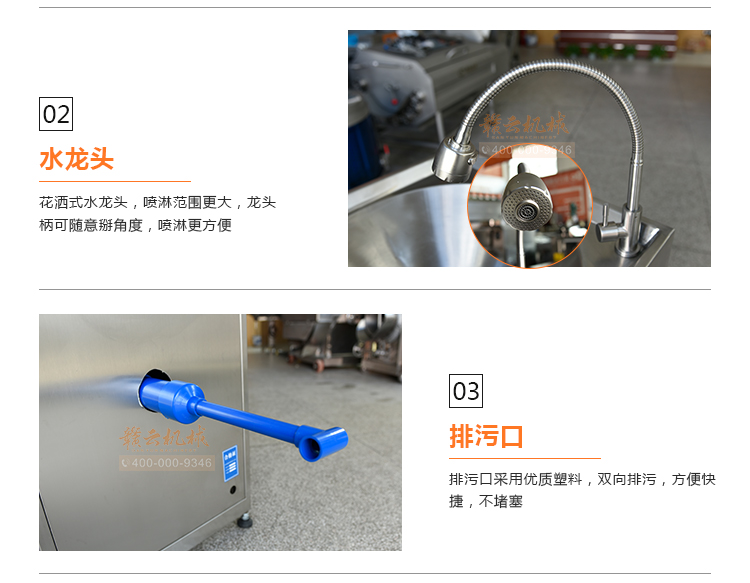 4.如設備內產生難聞的食物酸臭味,是由于沖洗不充分致使食物殘渣殘留在設備內造成,解決方法是打開水龍頭,開啟機器,帶水運轉三分鐘即可