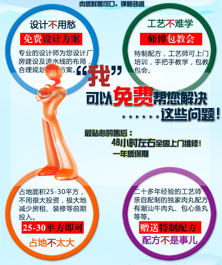 該套設備是生產500斤實心肉丸成套設備,一次性成本,持續收益,低門檻,高收益。3-4人人工生產肉丸,日產量200-300斤,效率低,速度慢。每月還需要支付昂貴的工資。而機器的日產量500斤,成型效果好,節約人工成本,一套機器可以用大概10年-20年。