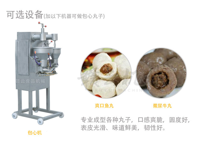 本套設備由52型絞肉機、180調速打漿機、雙速魚丸機(貢丸機或包心機)多樣化選擇,一臺就夠,熟化設備(3米定制水槽)需要產地面積:40-50平米供電需要:三相電可選設備:300采肉機,產量按工作8小時計算。如加上這臺設備可用來采新鮮魚肉,可做爽口魚丸,蝦丸等。