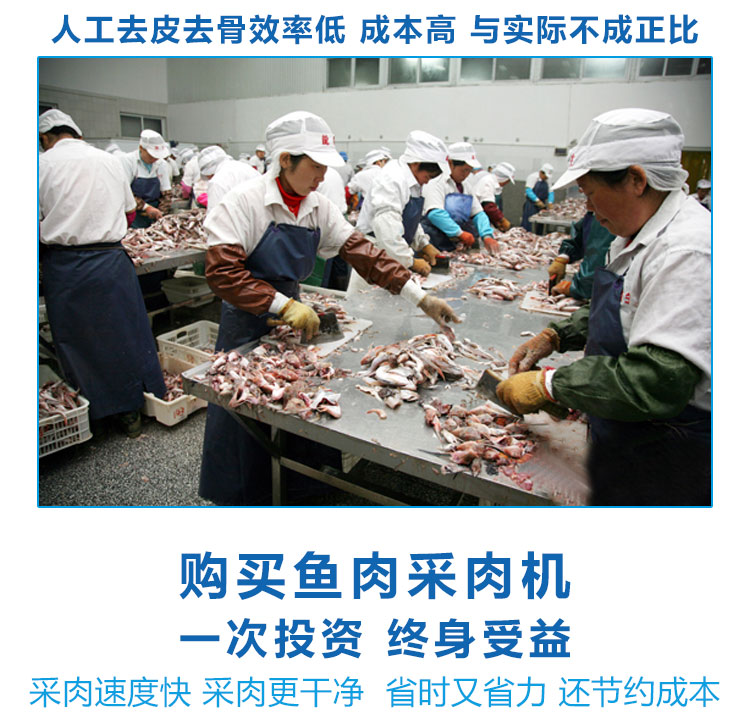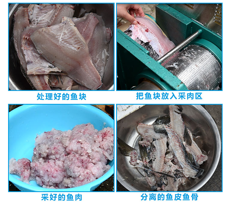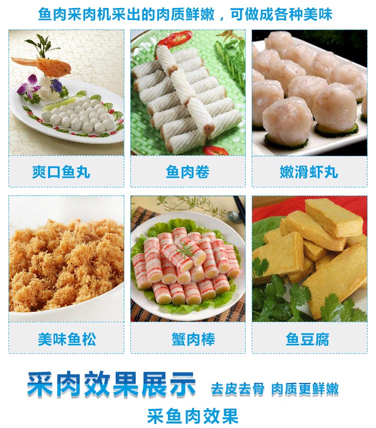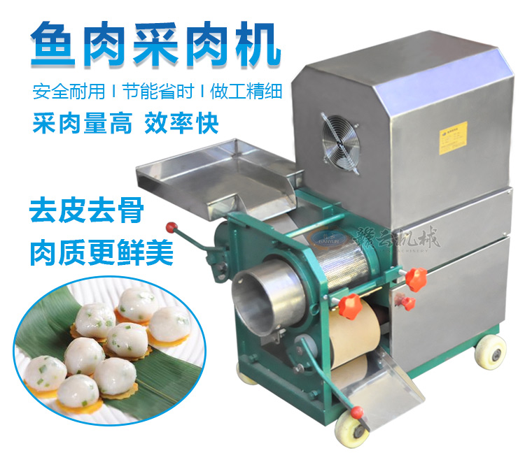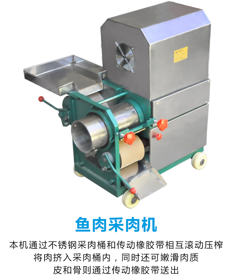 該機器除了可采淡水魚肉,還可采海魚肉、蝦、蟹、泥鰍等,比手工采肉效率更高,成本更低、干凈衛生,是魚糜制品前期處理的設備之一。配套的還有魚糜精濾機,我廠生產的普通款魚肉采肉機有160型和200型兩種型號,全不銹鋼材質的有200型、300型和350型;魚糜精濾機有100型、200型和300型三種型號。