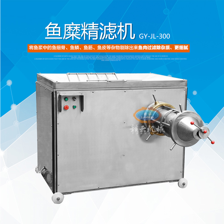 該機用于配套魚肉采取機、魚肉過濾除雜質,主要將魚漿中的魚細骨、魚鱗、魚筋、魚皮等雜物剔除出來,經加工出來的魚糜精細光潔、口感好,是加工優質魚糜的機械。