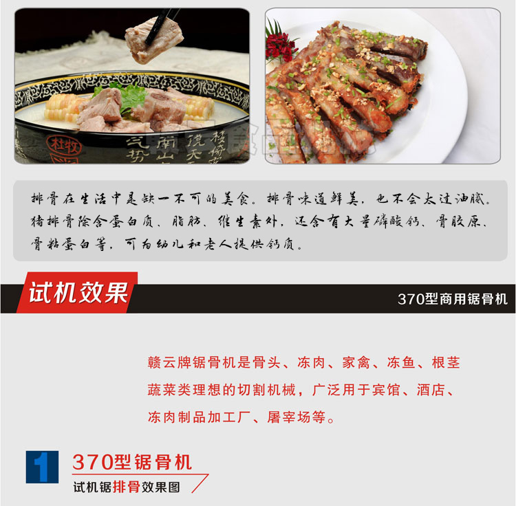 你還在為:砍骨頭難,砍骨頭累,費時,費勁,損耗大,成本高,利潤低而煩惱嗎?快請贛云牌370型商用鋸骨機幫您忙,解決骨類加工難題,節省工薪成本,提高加工效率,提升加工質量!