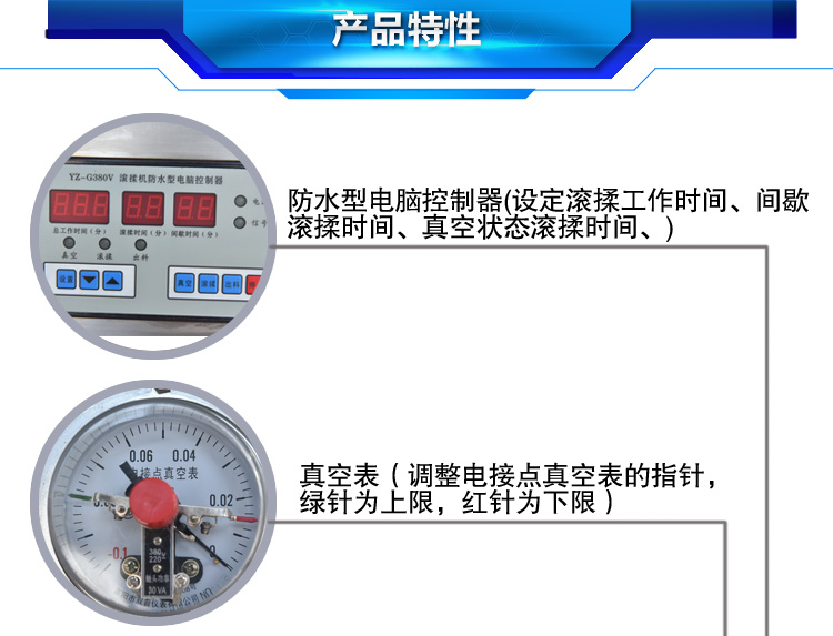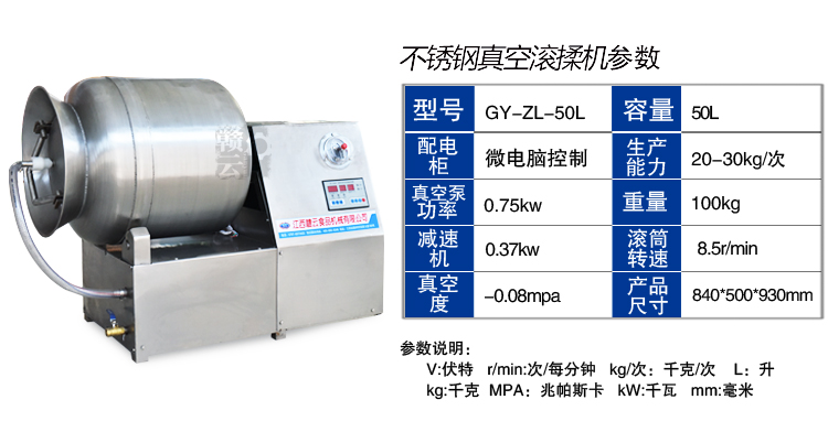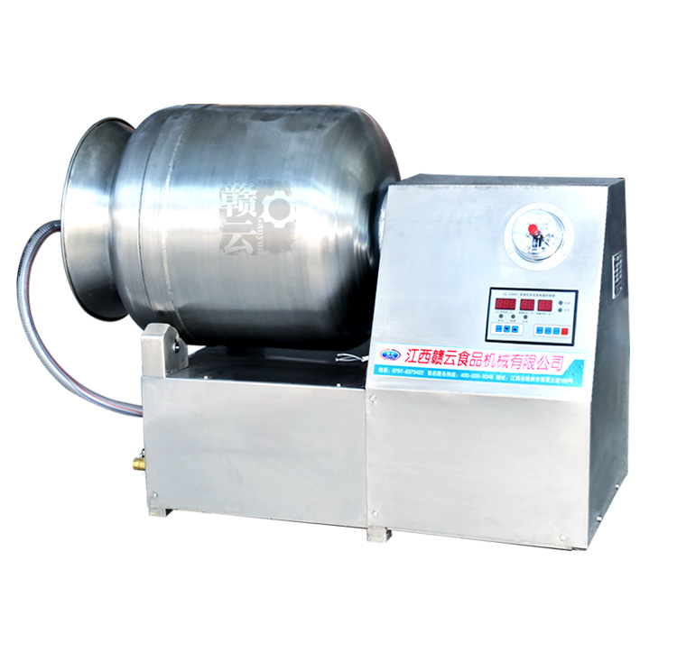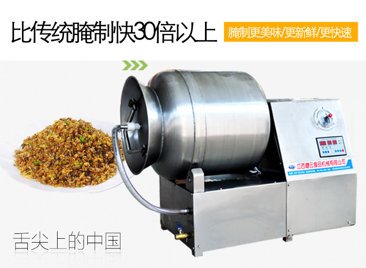 滾揉機可以使肉均勻的吸收腌漬,可以提高肉的結著力及產品的彈性;可以提高產品的口感及斷面效果;可以增強保水性,增加出品率;可以改善產品的內部結構,節能高效。整機采用不銹鋼制造,結構緊湊,滾筒兩端均采用旋壓式封帽結構,最大的增加滾筒內的摔打空間,使滾揉產品的效果均勻,噪音小,性能可靠,操作簡便,使用效率更高。