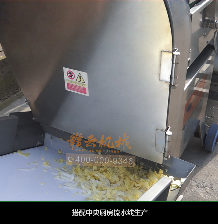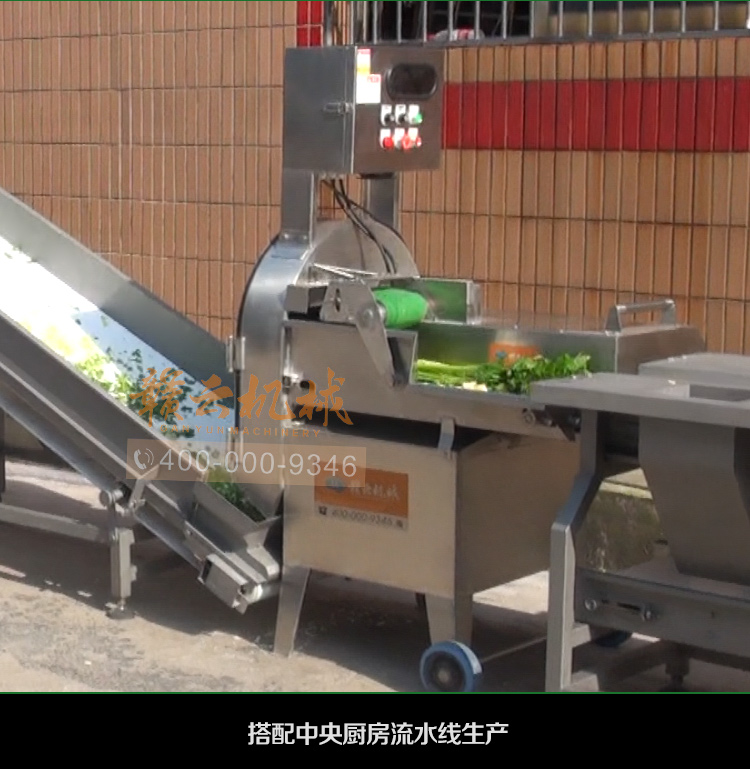 中央廚房凈菜加工設備之一_贛云牌150型數字切菜機,引進先進技術,利用斬刀快速切割原理設計,適合各類葉菜類,球根類的切割工序,1-60mm范圍內變頻可調,適合多元化中央廚房參與食堂切配之用,贛云機械,掌握肉丸加工成套設備,中央廚房凈菜設備核心技術,咨詢電話400-000-9346