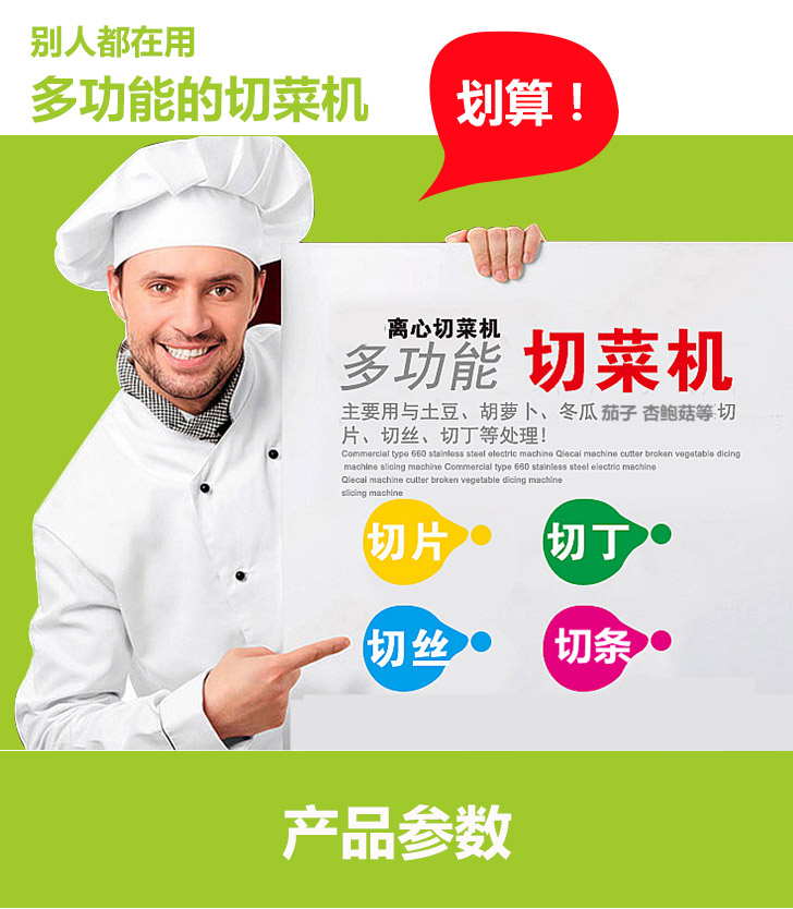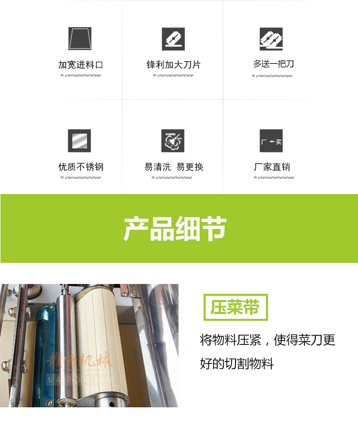 4、蘆薈粒、蘆薈條。改變切刀與送料槽安裝角度為專斜切機將根莖類蔬菜:如馬鈴薯、蕃薯、黃瓜、竹筍、洋蔥、茄子等切片、條、丁,適合衛生餐飲人員或食品加工廠使用. 用途:葉菜類:可切芹菜、大白菜、高麗菜、菠菜、蔥、大蒜、瓜類等長條狀之物切成片、絲、段狀,適合食品加工業者配合自動化生產線。