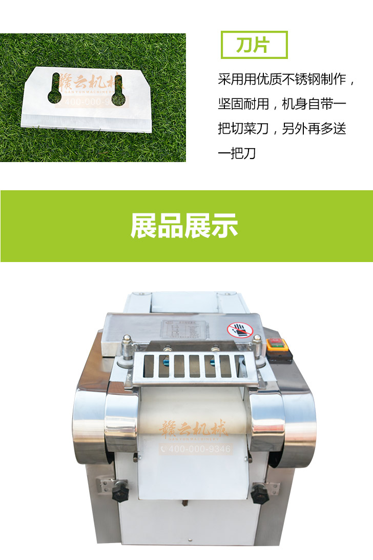 贛云牌多功能切菜機是根據多種樣機在實地使用中存在不足之處,反復改進設計制造,采用不銹鋼和全滾動軸承結構,具有外形美觀,成熟可靠,使用維修方便等特點。適用直蔬菜脫水、速凍、保鮮、腌漬等食品行業各類蔬菜。刀片距離可調節在0.1cm-2cm之間即切片、丁、絲厚薄在0.1cm-2cm。