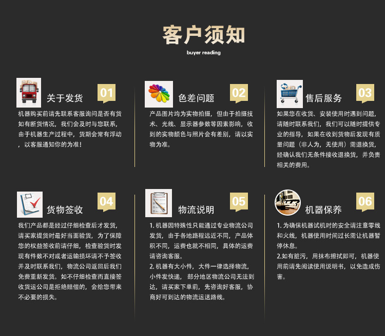 買家必讀 (網站報價不含運費不含稅,開具發票需加稅點,10kg以下貨物可選擇發快遞,其他貨物由物流托運需要自提)