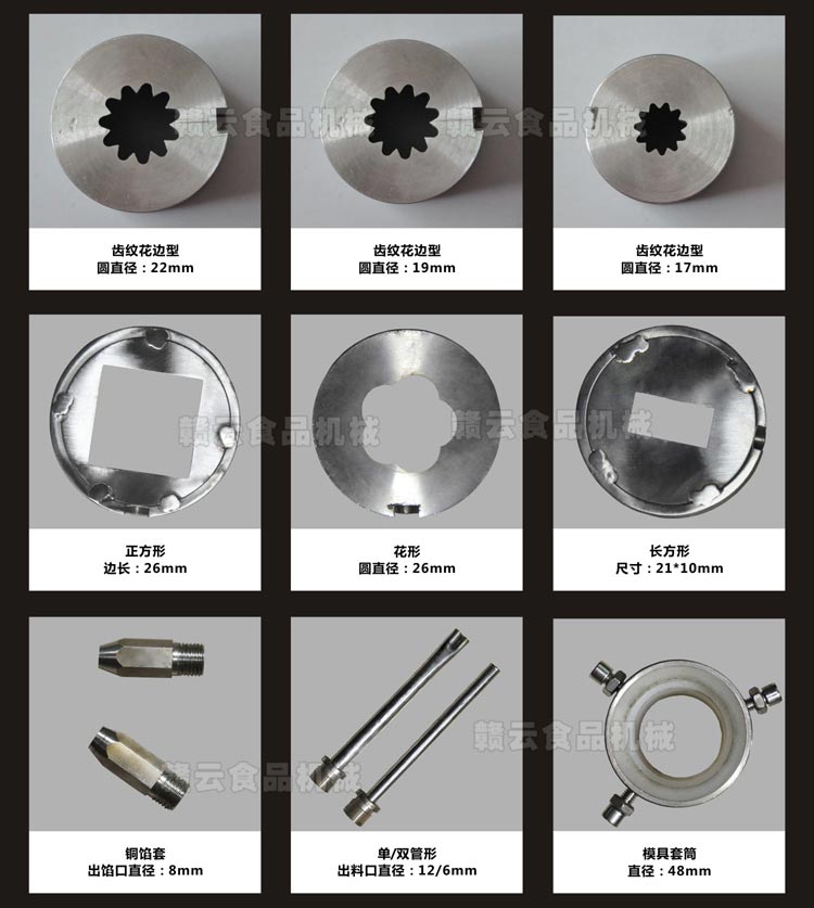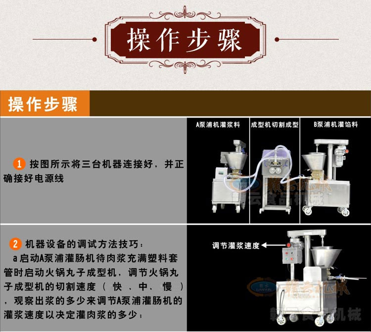 多功能火鍋料組合成型機組是由兩臺泵浦機和一臺火鍋料成型機組合而成,泵浦機起灌漿作用,火鍋料成型機起成型作用,本套成型機組可成型多種規格丸子,多種不同花色的丸子,又可稱為多樣丸子機,花樣丸子機,單色丸子機,多色丸子機等等。