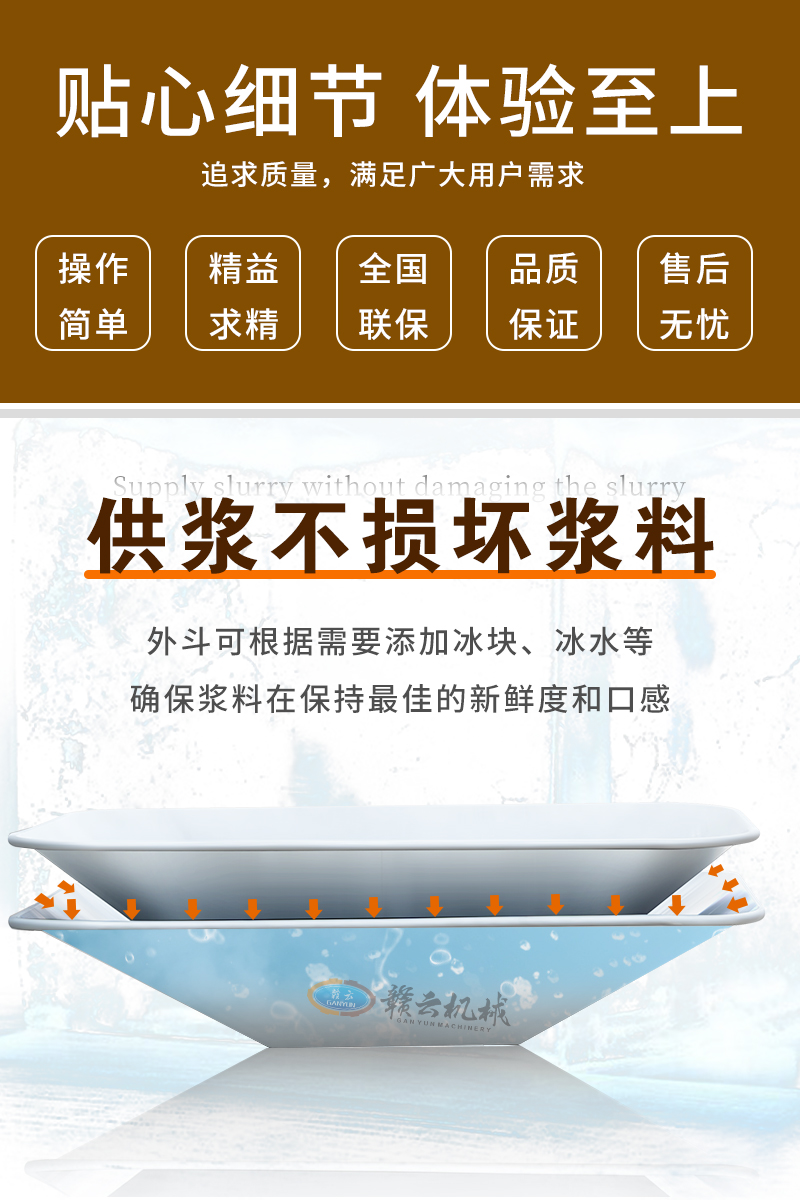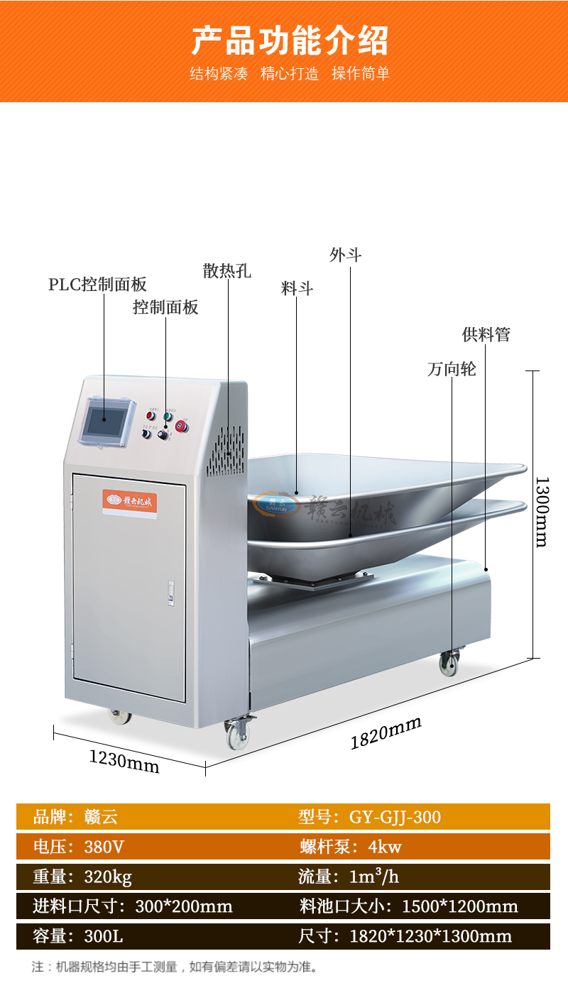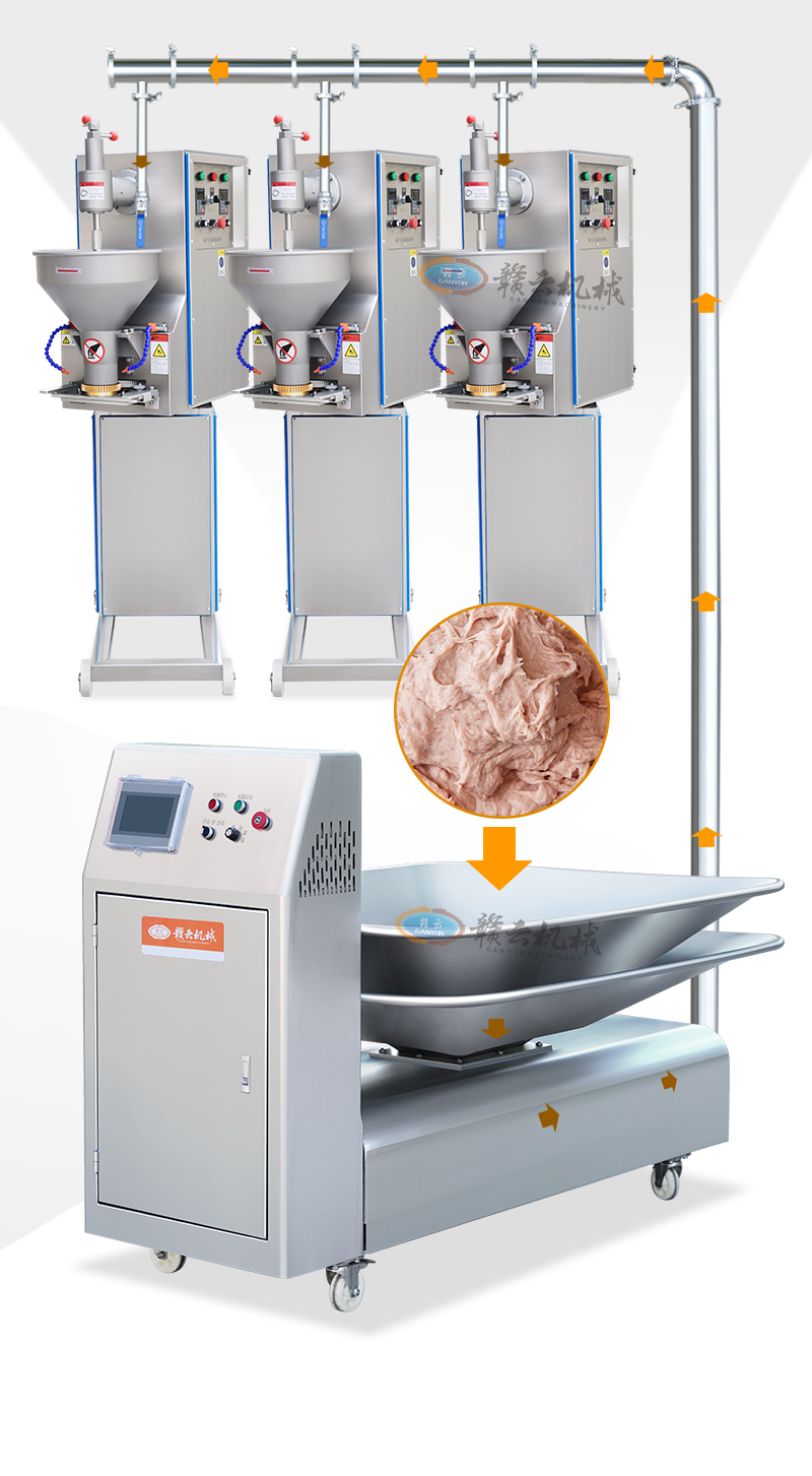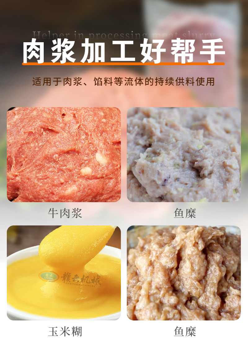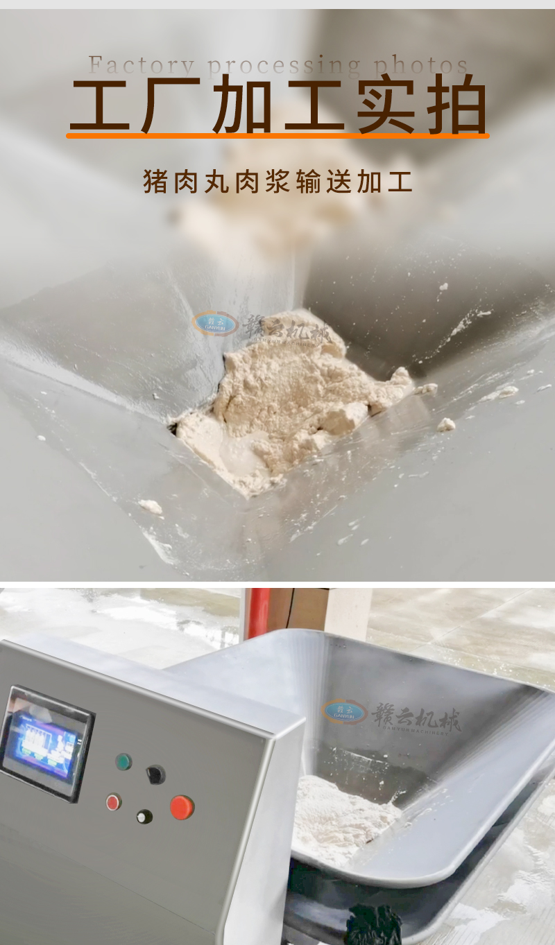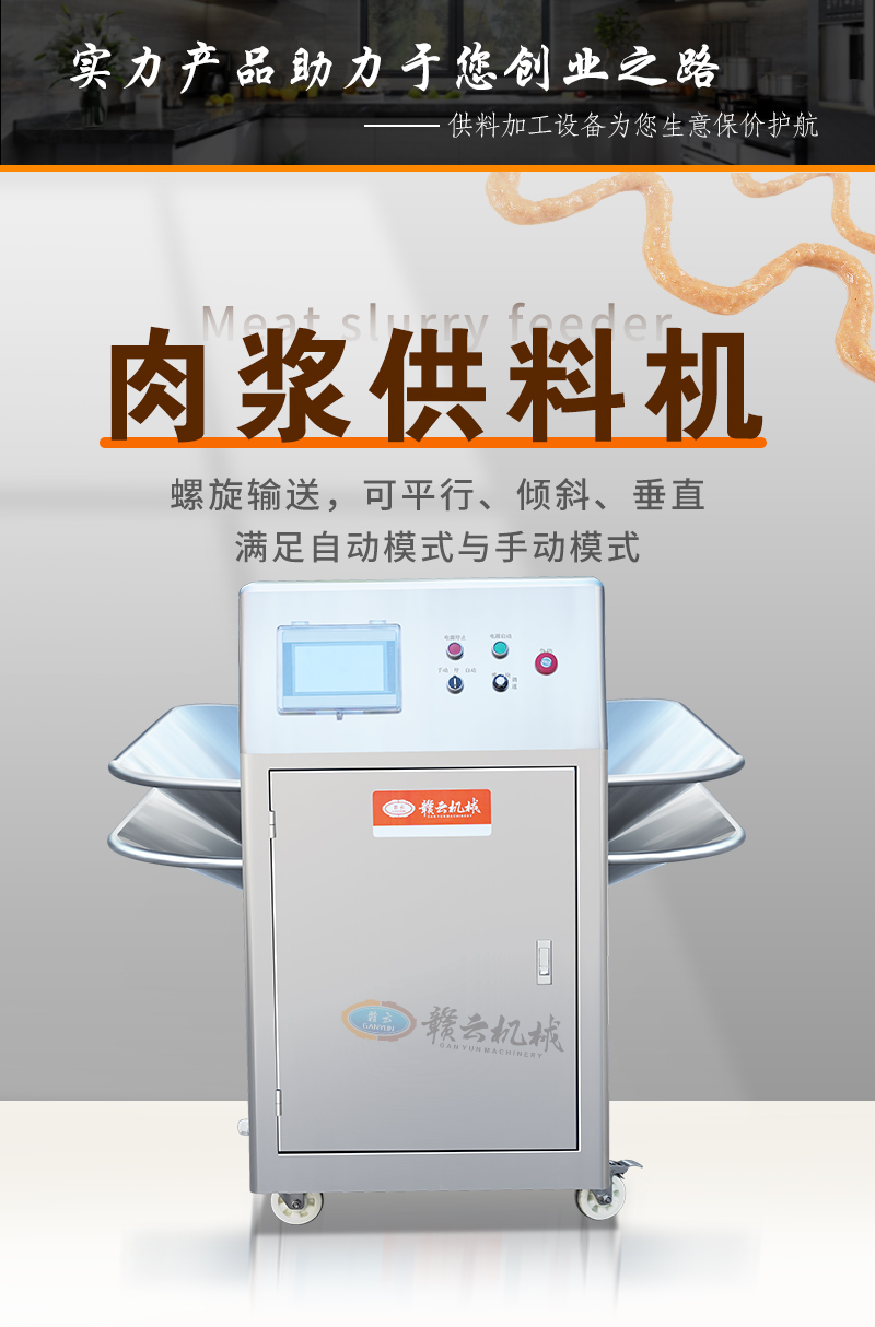 肉漿供料機通過不銹鋼單螺桿進行精準供料,適用于魚丸、牛肉丸、火腿腸等全自動生產線時供料,整體供料穩定,輸送平衡,在連續供料時不會破壞漿料顆粒纖維,能有效提升工廠自動化程序。