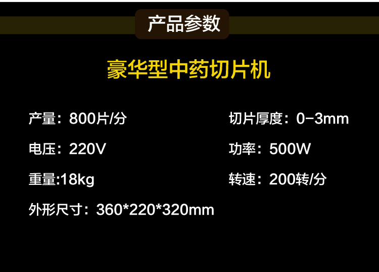 本機選用單相電機配套,采用高檔軸承,并安裝四把刀片在刀盤上,速比慢而切片功效高,切片厚薄可以調節,廣泛適用于中藥房、藥店、中藥加工場等。本機具有體積少、效率高、操作簡便、精巧美觀,即省電又安全等特點。
