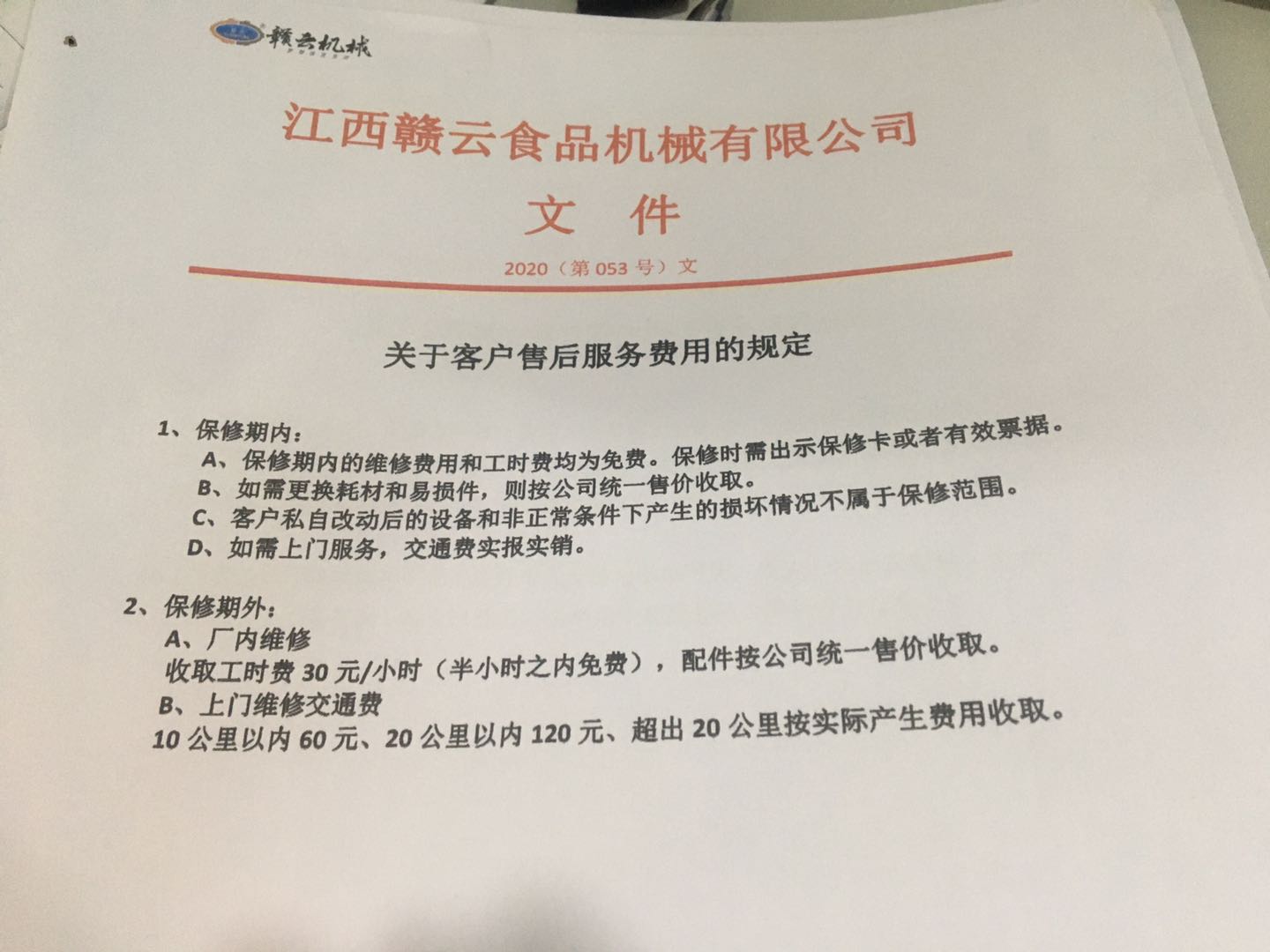 A,廠內維修收取工時費30元/小時(半小時之內免費),配件按公司統一售價收取。