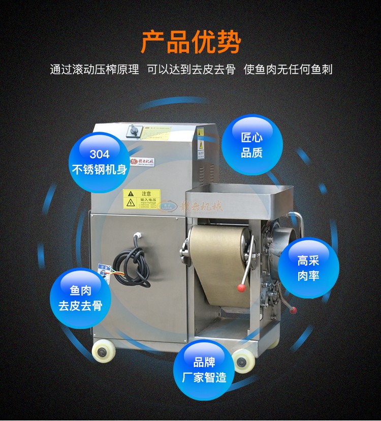 最初的160型魚肉采肉機屬于最低版本,最大的區別是材料不是全不銹鋼和體積相對比較小,200型魚肉采肉機的區別就是大小會更大,采肉能采更多。200型不銹鋼魚肉采肉機是"200型魚肉采肉機"的升級版,不僅材質換成不銹鋼了,而且做得更精煉了,剩下的300型魚肉采肉機(不銹鋼)是在200的基礎上進行了大小的改進,使加工量更大,350型魚肉采肉機(工業型)則是特地面向工廠大量生產使用,不僅可以方便大量采肉,而且更能適應長時間使用。